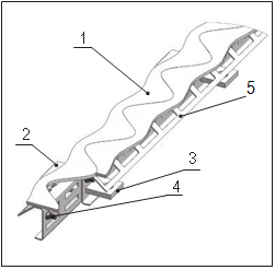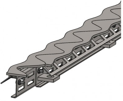 Синусоидальные пластины 1 (2 шт.) изготовлены из толстолистовой стали, защищают кромку шва, обеспечивают плавное (безударное) преодоление шва транспортными средствами даже при раскрытии шва.